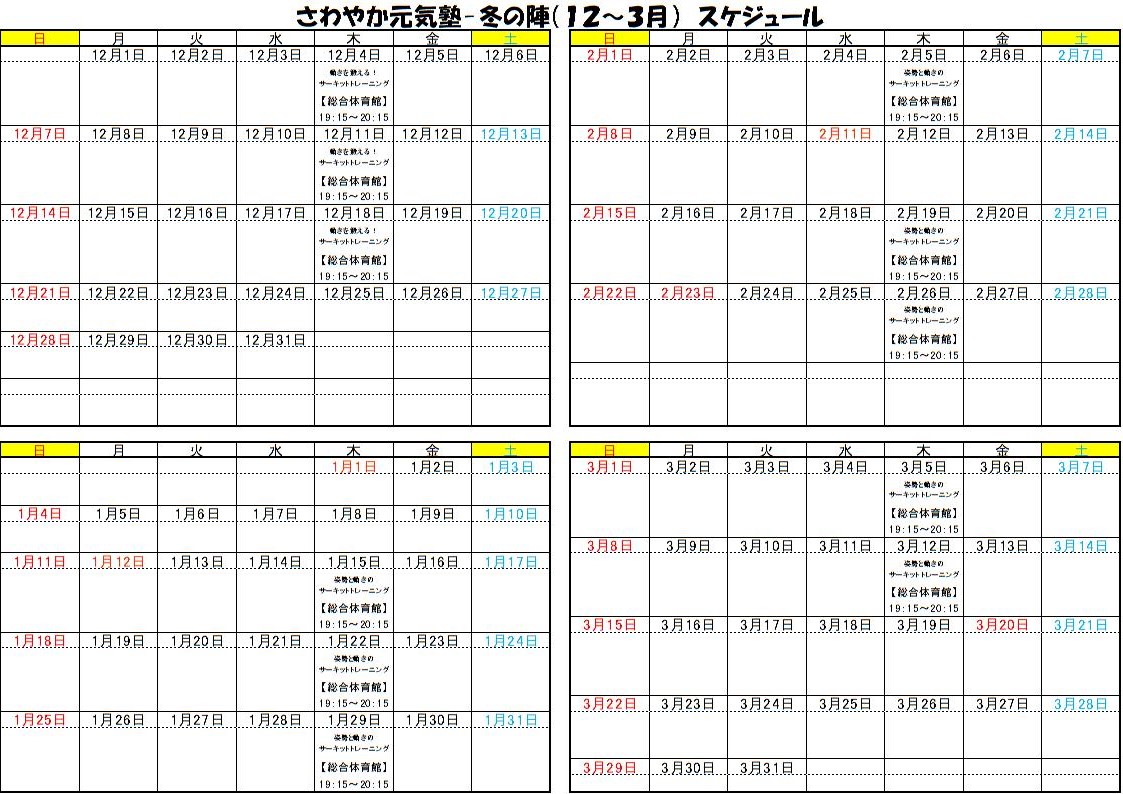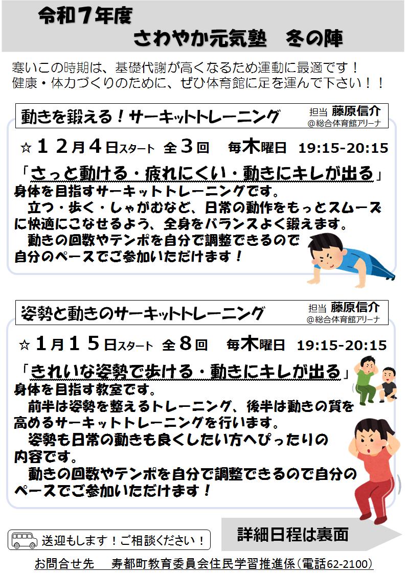 12月4日から毎週木曜日に「さわやか元気塾 冬の陣」を開催します!!